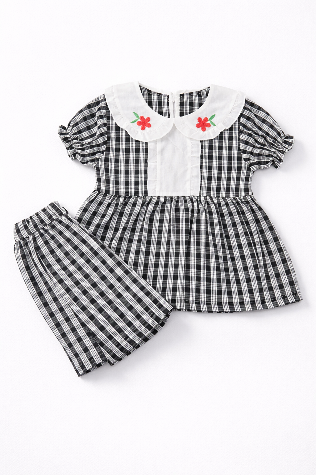 Girls Black & White Check Frock with Matching Pants 2-Piece Summer Set