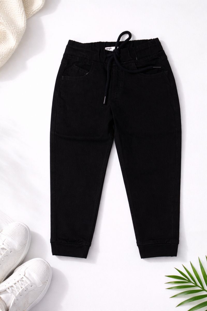 Classic and comfortable black jogger pants designed for everyday wear. Featuring a soft elasticated waistband with an adjustable drawstring, these joggers provide a secure yet flexible fit for active kids. The minimal design makes them easy to pair with any sweatshirt or hoodie, perfect for playtime, casual outings, or lounging at home.