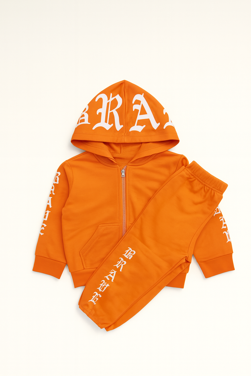 Kids Orange BRAVE Printed Hoodie & Jogger Set (2-Piece Tracksuit)